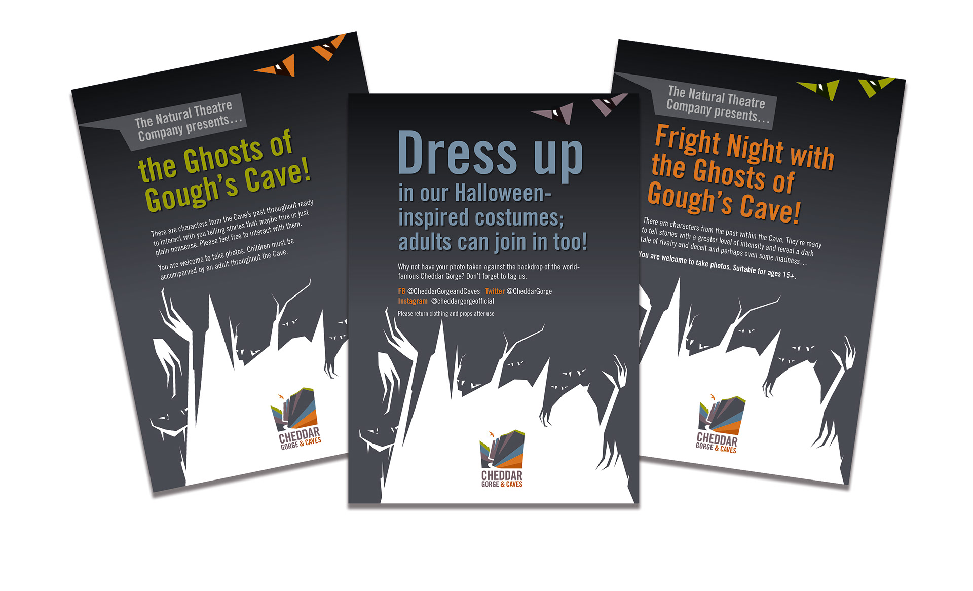 A series of Halloween information posters for Cheddar Gorge & Caves