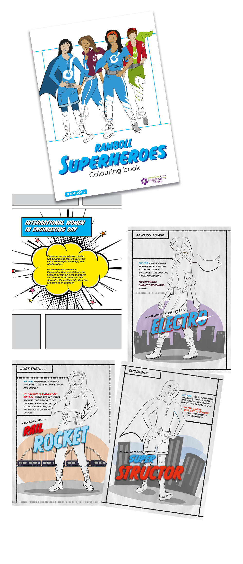 Character design for a colouring book promoting STEM careers to primary schools